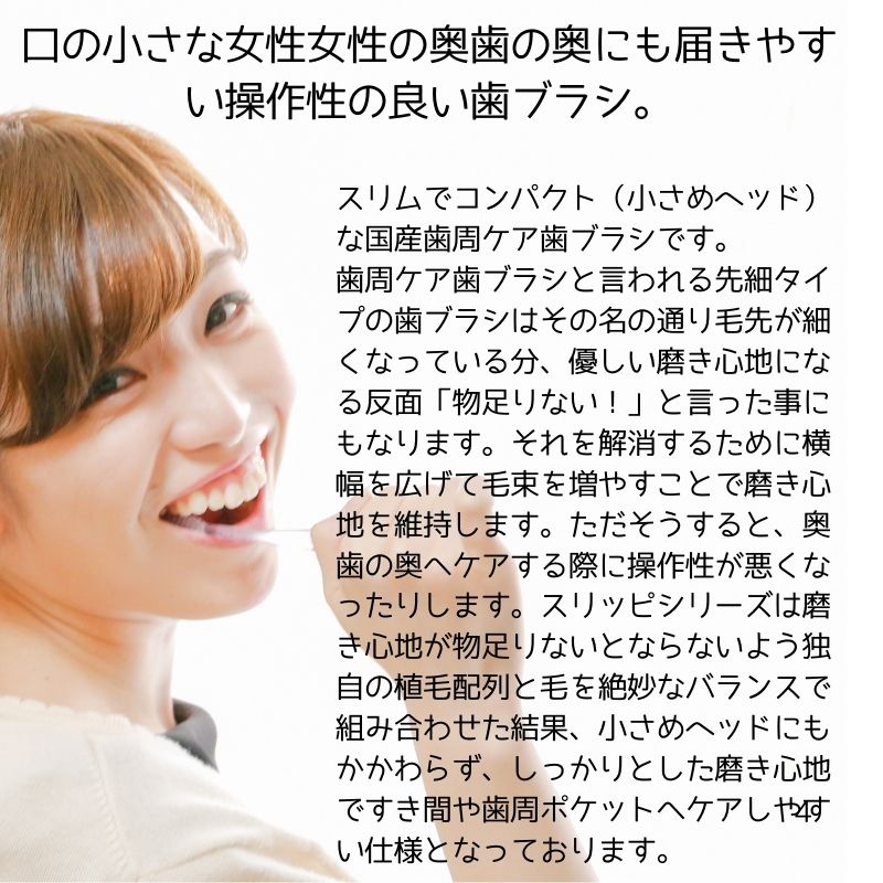 【24本/コンパクトヘッド】 コンパクト歯ブラシ 奥まで届く【ふつう・小さめヘッド・歯周ケア】 | スリッピ独自の植毛配列と毛を絶妙なバランスの組み合わせ