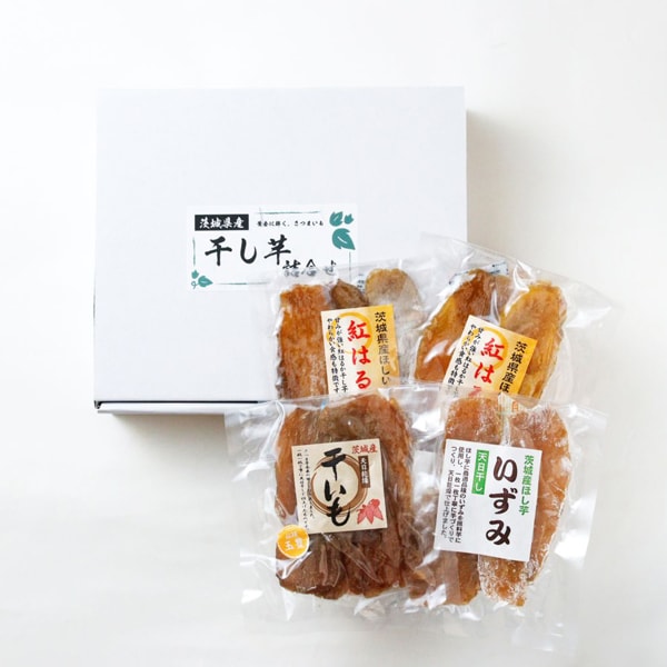 - 茨城産玉豊平干し芋90g×1、茨城産いずみ平干し芋90g×1、茨城産紅はるか平干し芋90g×2