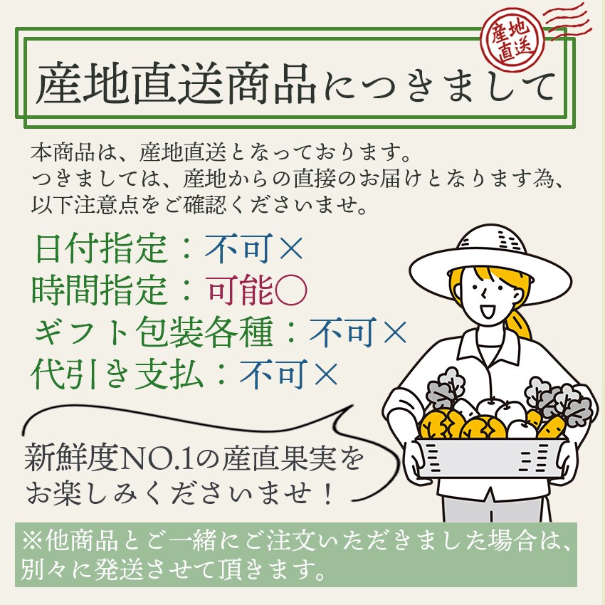・配送日時の指定:「発送予定日」に配送日指定の記載がある場合に、ご利用可能です。