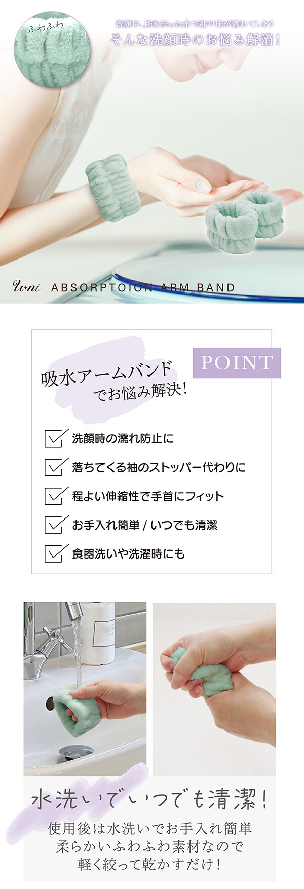 【ミント】吸水アームバンド | 洗顔中、腕を伝った水で袖や床が濡れてしまう。そんな洗顔時のお悩み解消