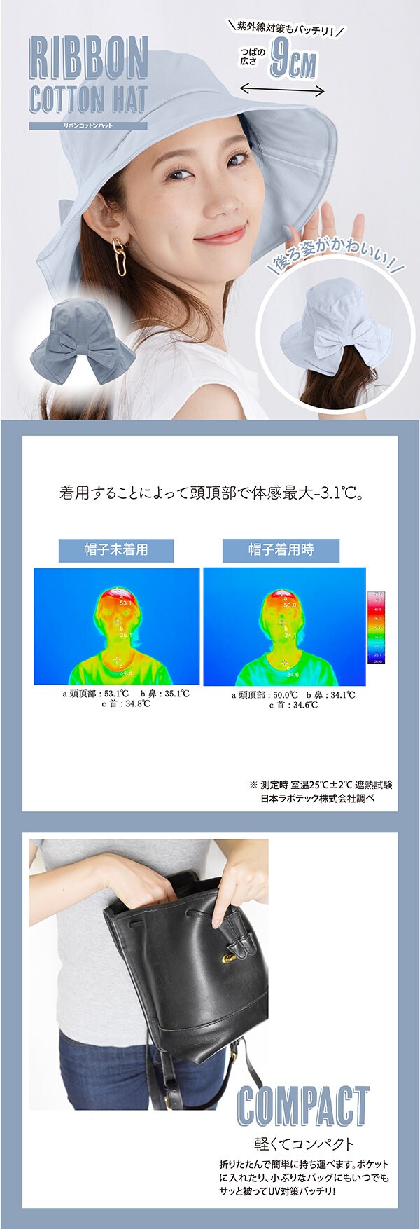 【サックス】リボンコットンハット | 体感-3.1℃!つばの広さ9cm!紫外線対策に可愛いハット!