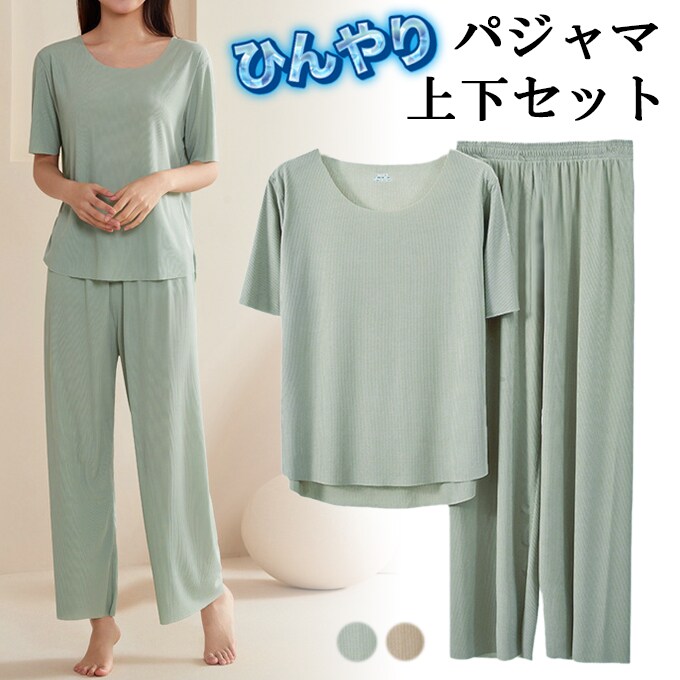 - 【グリーン/XLサイズ相当】ひんやりパジャマ上下セット