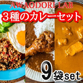 - 【3種計9個セット】AWAODORI LAB 骨付きカレー・ガパオ・バターチキンカレー9個セット