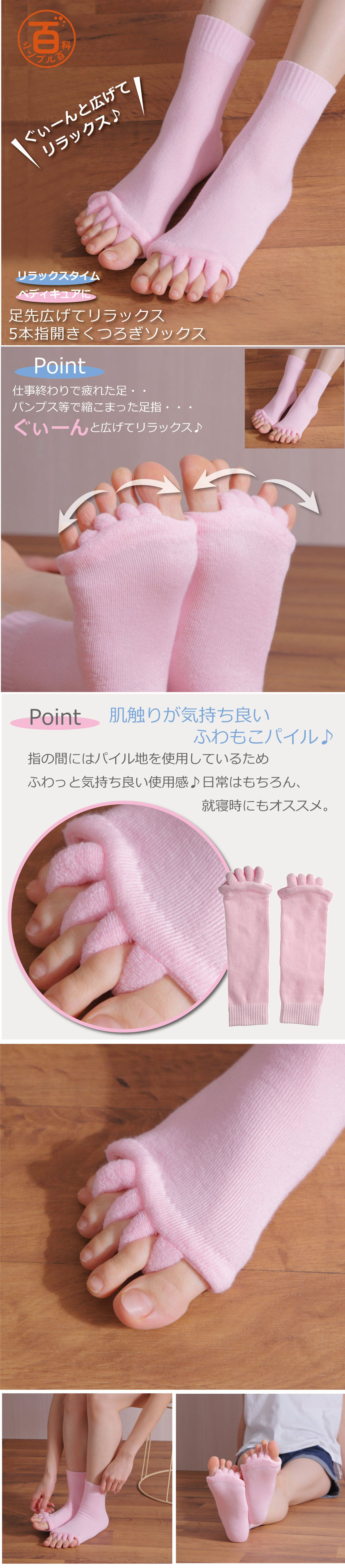 - <シンプル百科>【ライトピンク】足指広げてリラックス 5本指開きくつろぎソックス●
