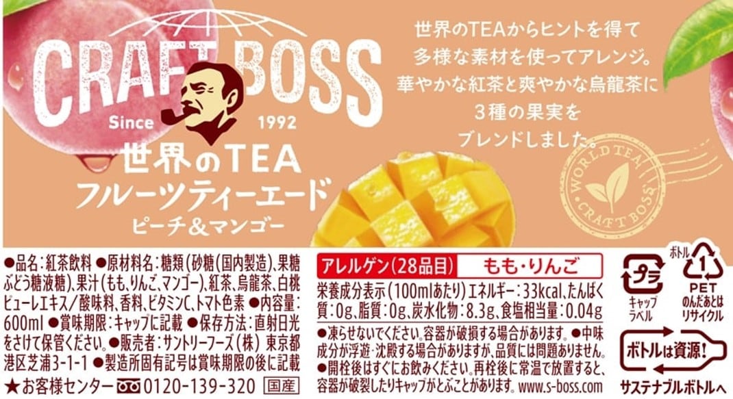 サントリー クラフトボス フルーツティーエード 600ml×24本 | ピーチ&マンゴーのティーエード
