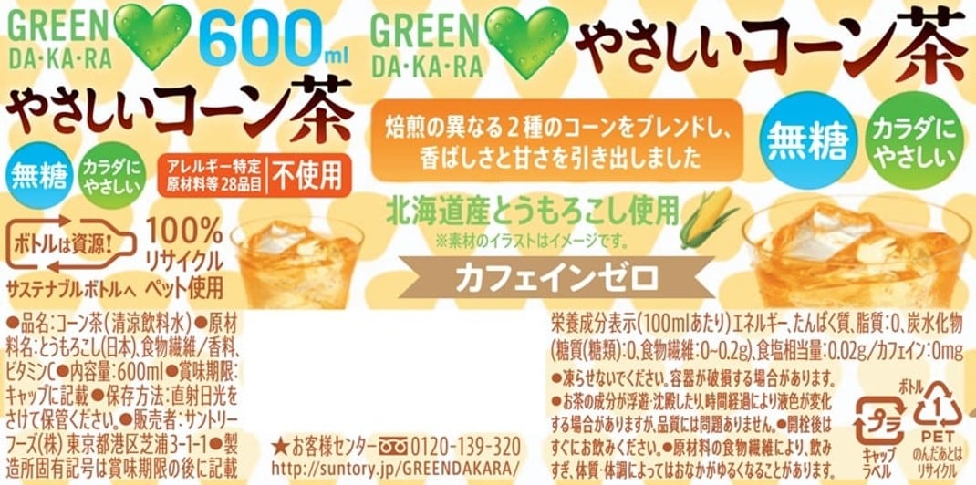 サントリー GREEN DA・KA・RA やさしいコーン茶 600ml×24本 | 甘みすっきりでゴクゴク飲めるコーン茶