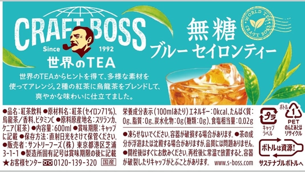 サントリー クラフトボス ブルー セイロンティー無糖 600ml×24本 | 味香り豊かで後ギレよい爽やかな無糖ティー