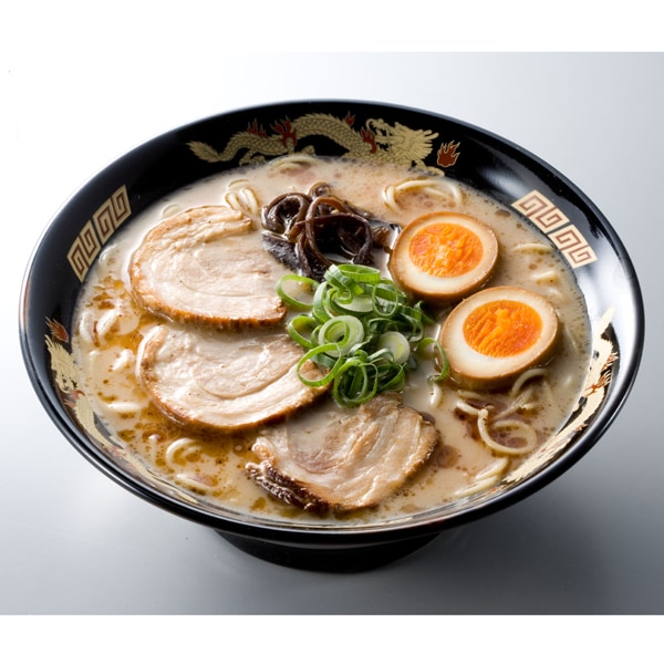 じっくり煮込んだとんこつスープにマー油(調味油)を加えた味は驚くほどにまろやか。麺は熊本県産小麦粉使用で、生麺をしっかりと熟成させた熟成乾燥麺。お鍋ひとつの簡単調理でお召し上がりいただけます。