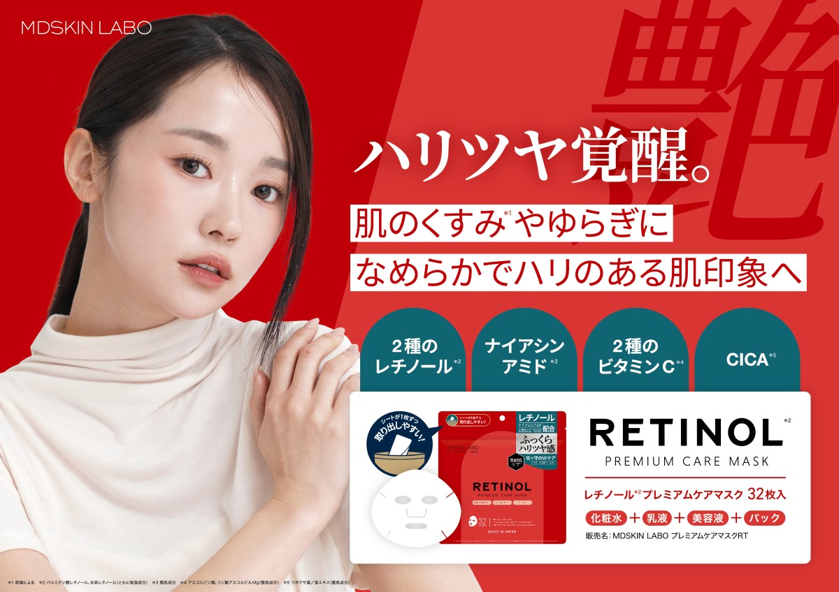 【32枚×4袋】ハリのある印象肌へ レチノールプレミアムケアマスク | なめらかでハリのあるお肌へ導く大容量フェイスマスク