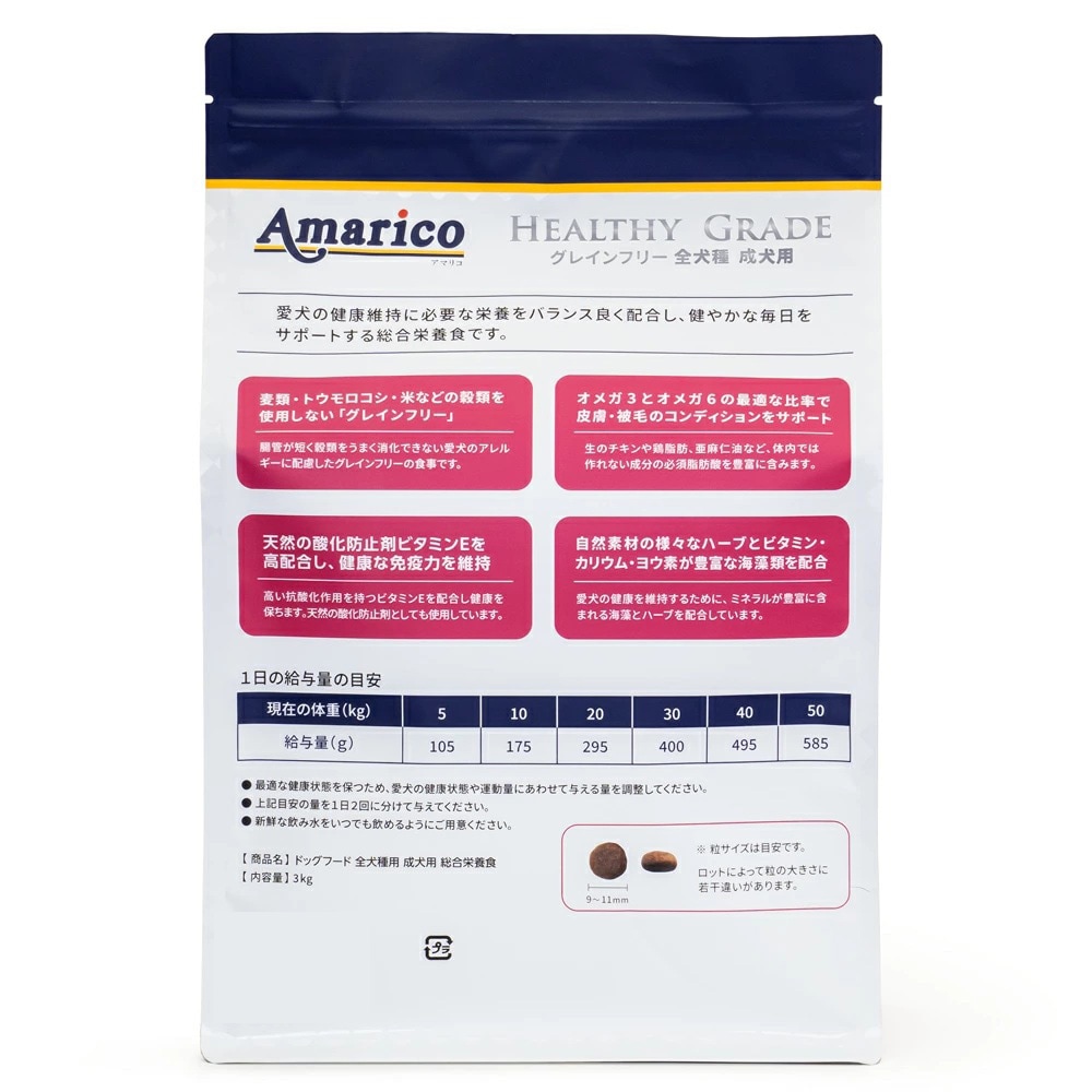 Amarico アマリコ 成犬用 グレインフリー ドッグフード 3kg チキン49.5% ハーブ入り 全犬種 香料・着色料・合成保存料不使用 穀物不使用 総合栄養食 犬の餌