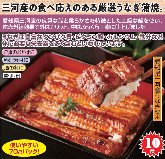 - 【70g×10食】三河産うなぎ蒲焼切身