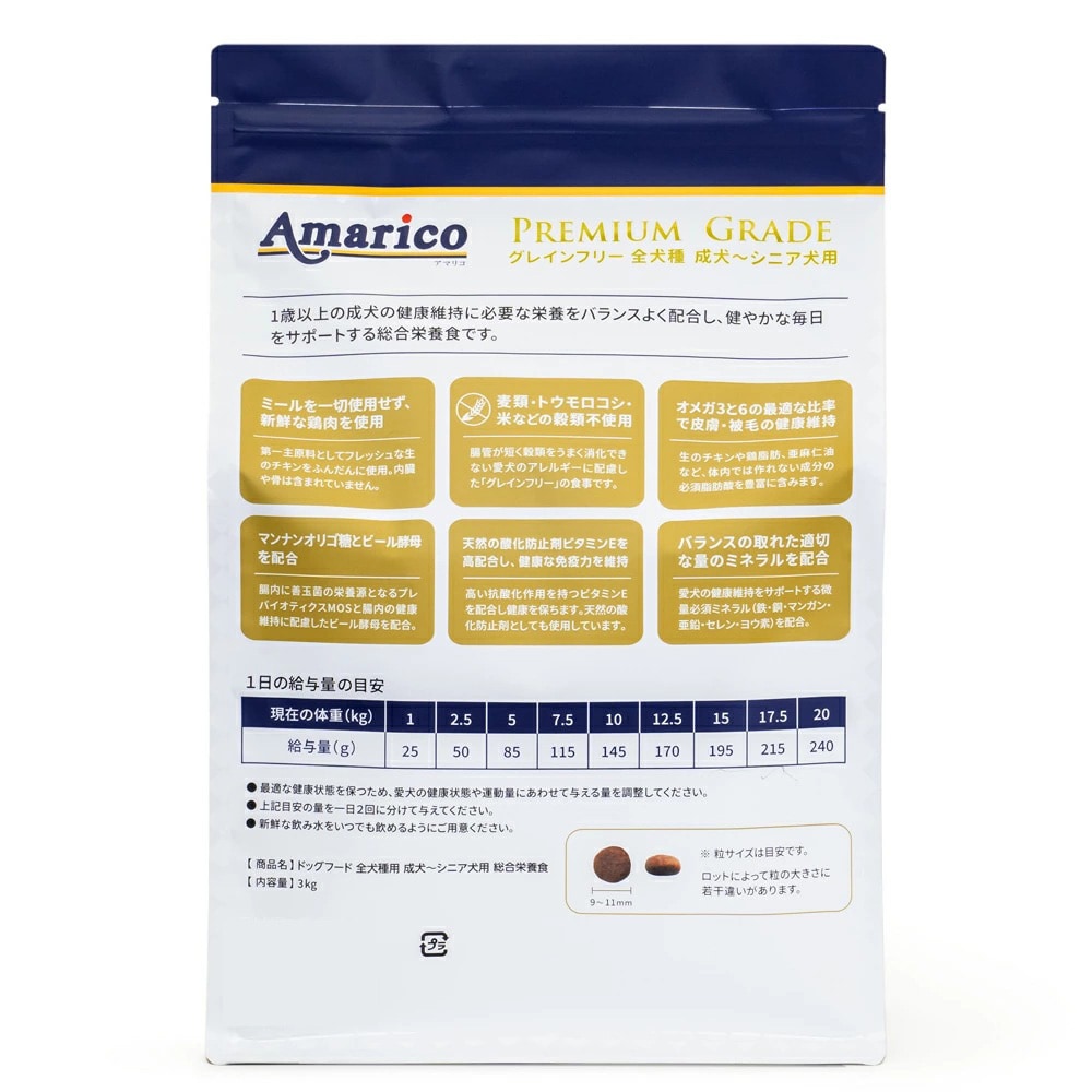 - 【3kg×3袋・シニア犬用】Amarico アマリコ グレインフリー ドッグフード チキン GOLD