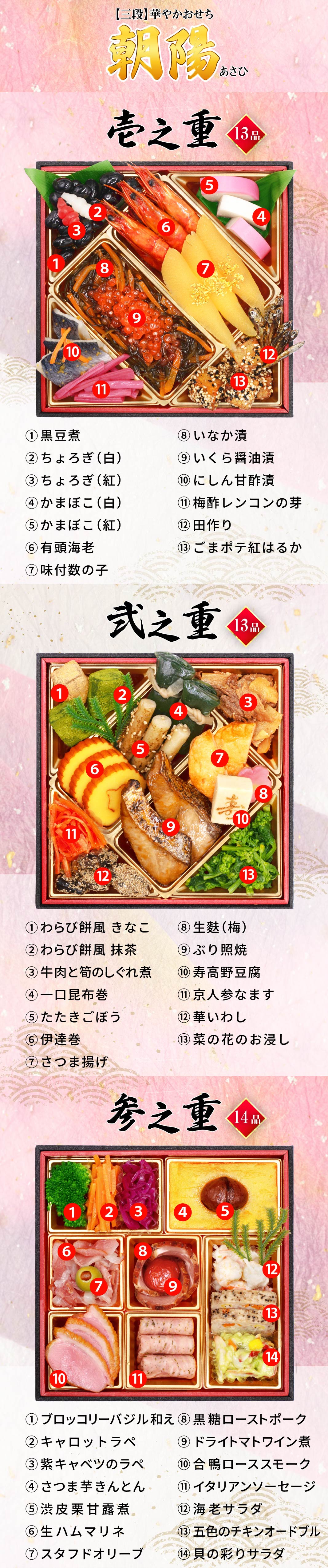 - 【12/29着】おせち「朝陽」(6寸/40品/2-3人前/和洋/三段重)