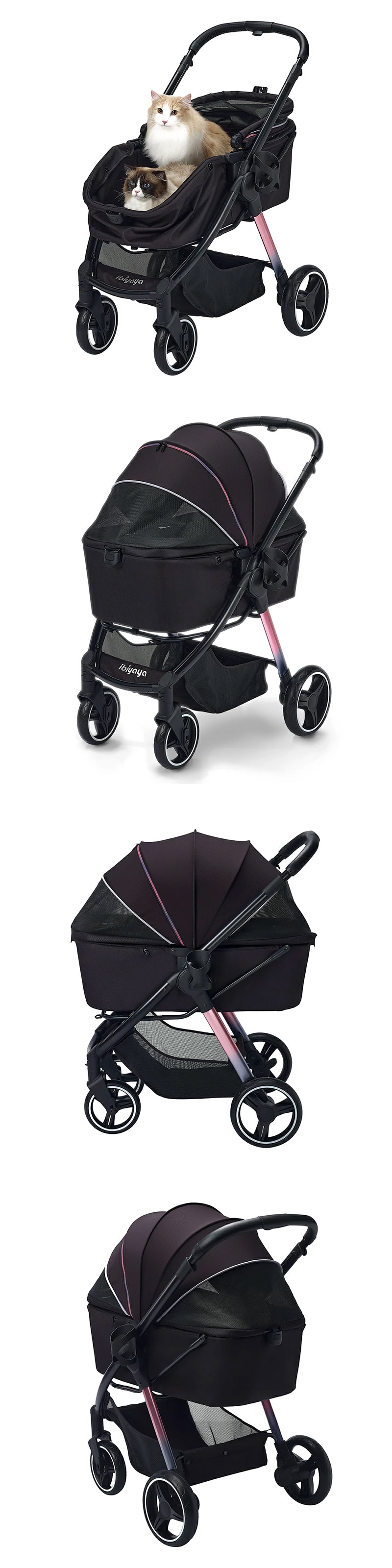 - 【プリズムブラック】ibiyaya レトロ リュクス ペット ストローラー ペットカート