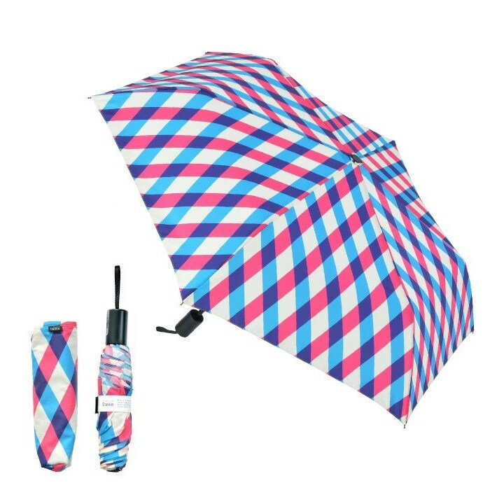 Danke 晴雨兼用折りたたみ傘 レディース CheckBluePink 超撥水・ハンドル抗菌・UVカット