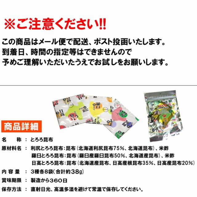 - 【3種計約38g/3種×各8袋】北海道3種とろろ昆布 使いやすい丸形