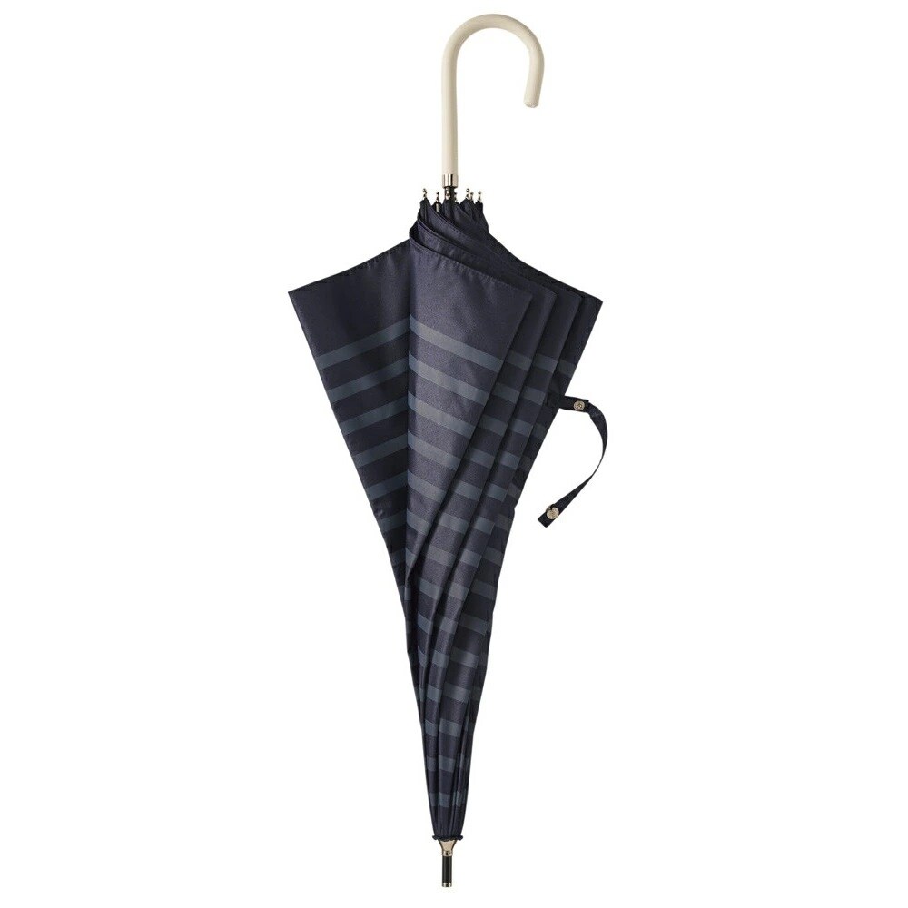【ネイビー】ビコーズ PUボーダー 晴雨兼用傘 長傘 | シンプルなボーダーが合わせやすく持ちやすい。
