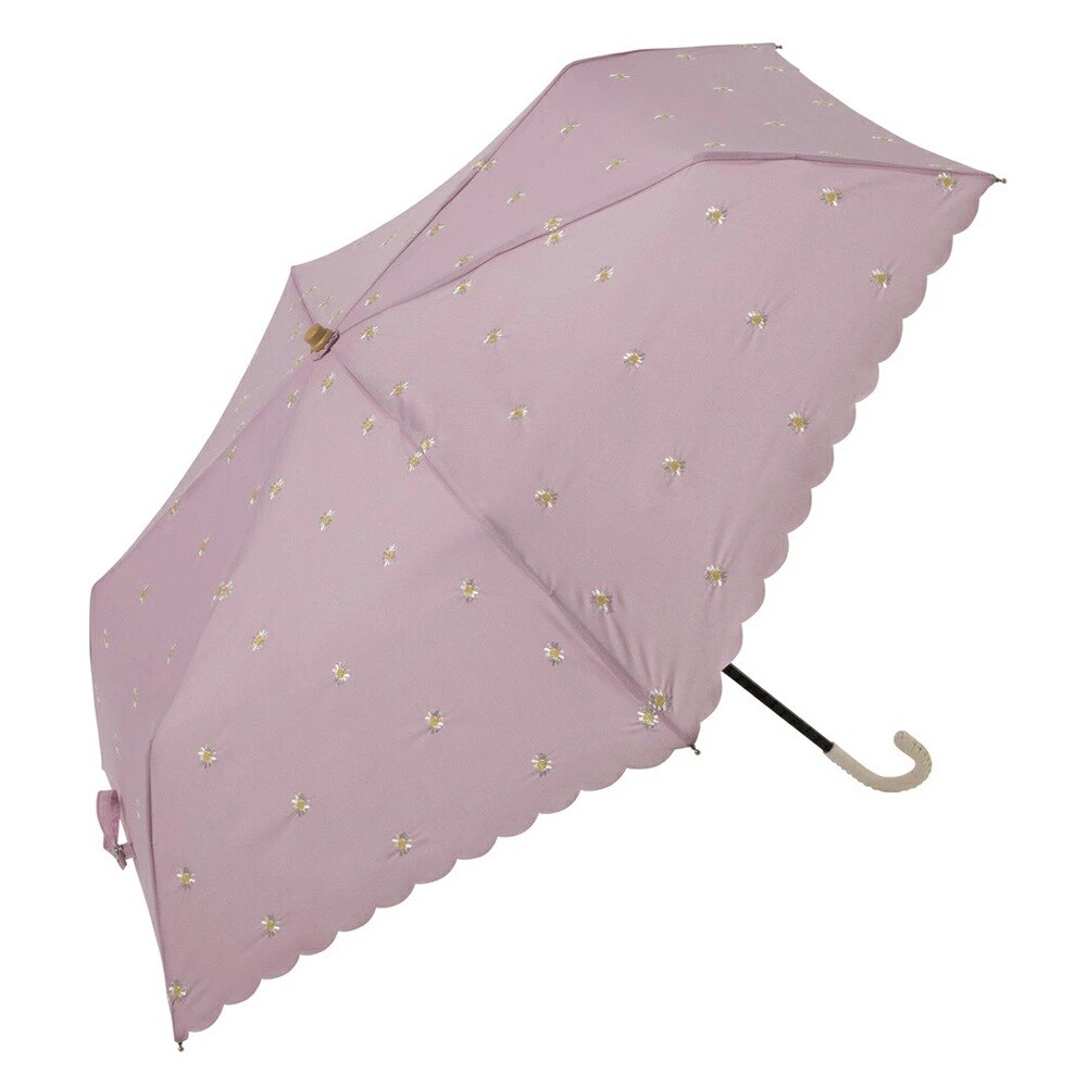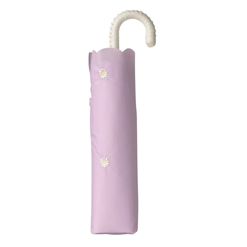 - 【パープル】ビコーズ 晴雨兼用折りたたみ傘 プチフラワー刺繍