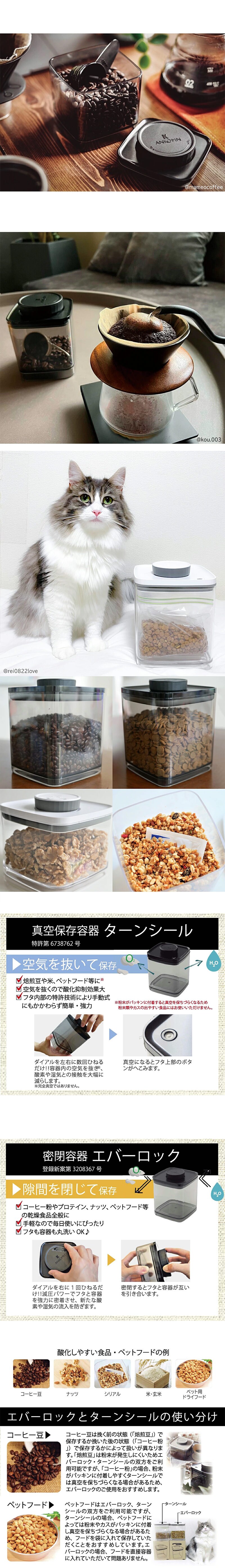 ダイアルひとひねりと手軽なので、日々使う分を密閉保存容器“エバーロック”に、それ以外は、空気を抜いてより酸化抑制効果が高い真空保存容器“ターンシール”と使い分けて、食材の保存に役立てて下さい。