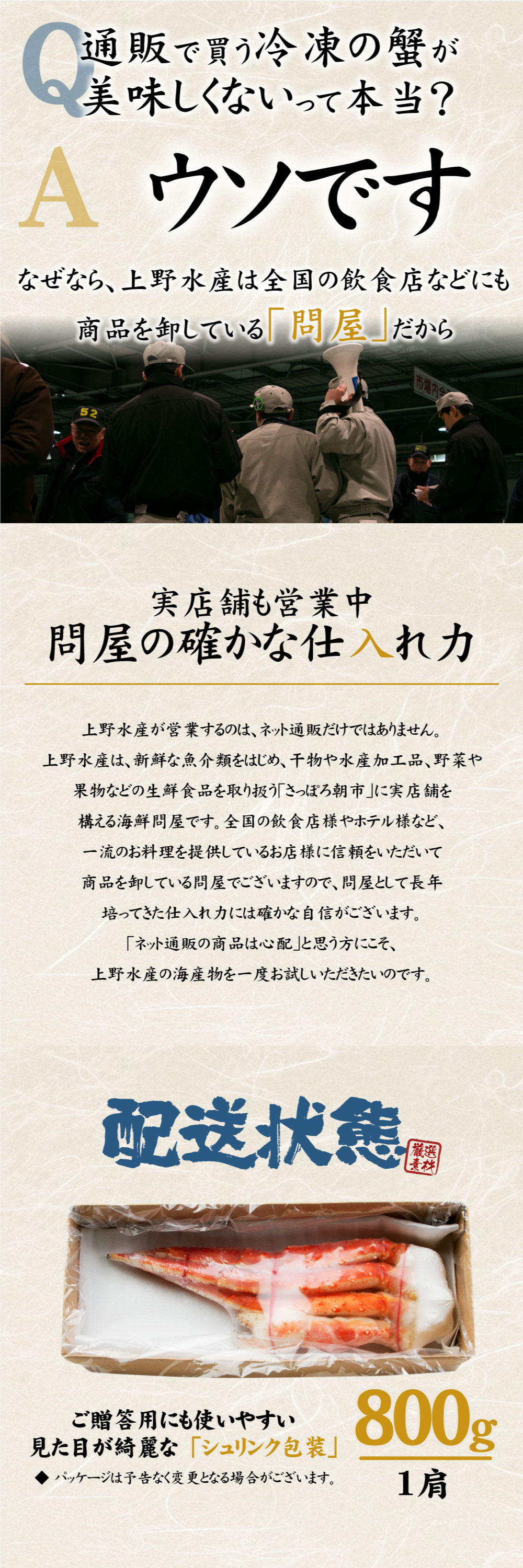 ボイルタラバガニ脚800g | 極太サイズを厳選。職人が絶妙な塩加減で茹で上げ、急速冷凍した一級品。