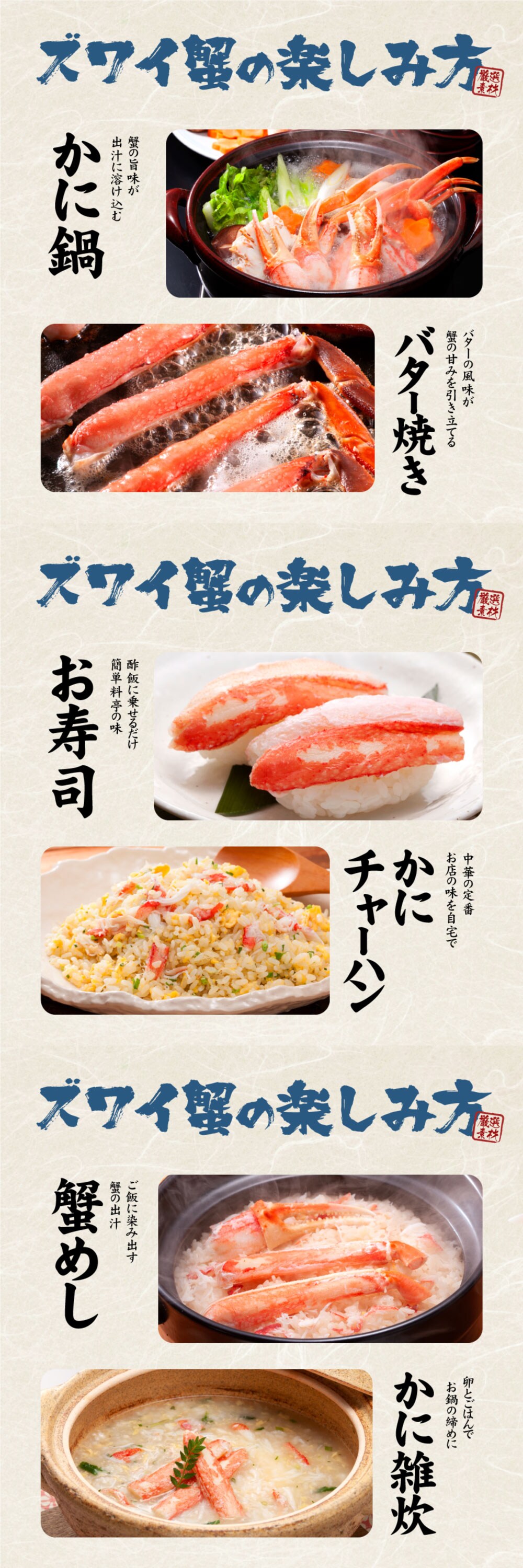 ・原材料/材質/素材:ずわいがに/ロシア・カナダ産、塩