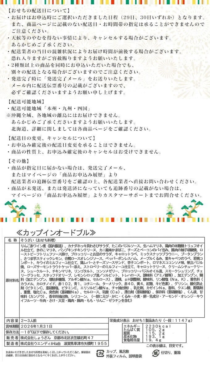 - 【12/29着】京都しょうざん おせち「千寿閣」(与段重/4...