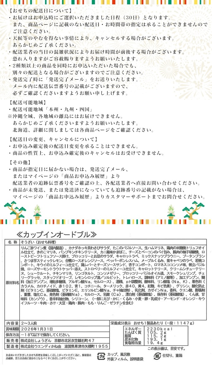- 【12/29着】京都しょうざん おせち「千寿閣」(与段重/4...