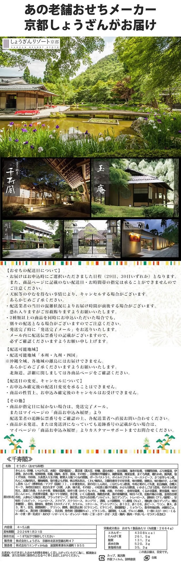 【12/29着】京都しょうざん おせち「千寿閣」(与段重/4-5人前相当/67種67品入) | 京都しょうざんリゾートのおせち