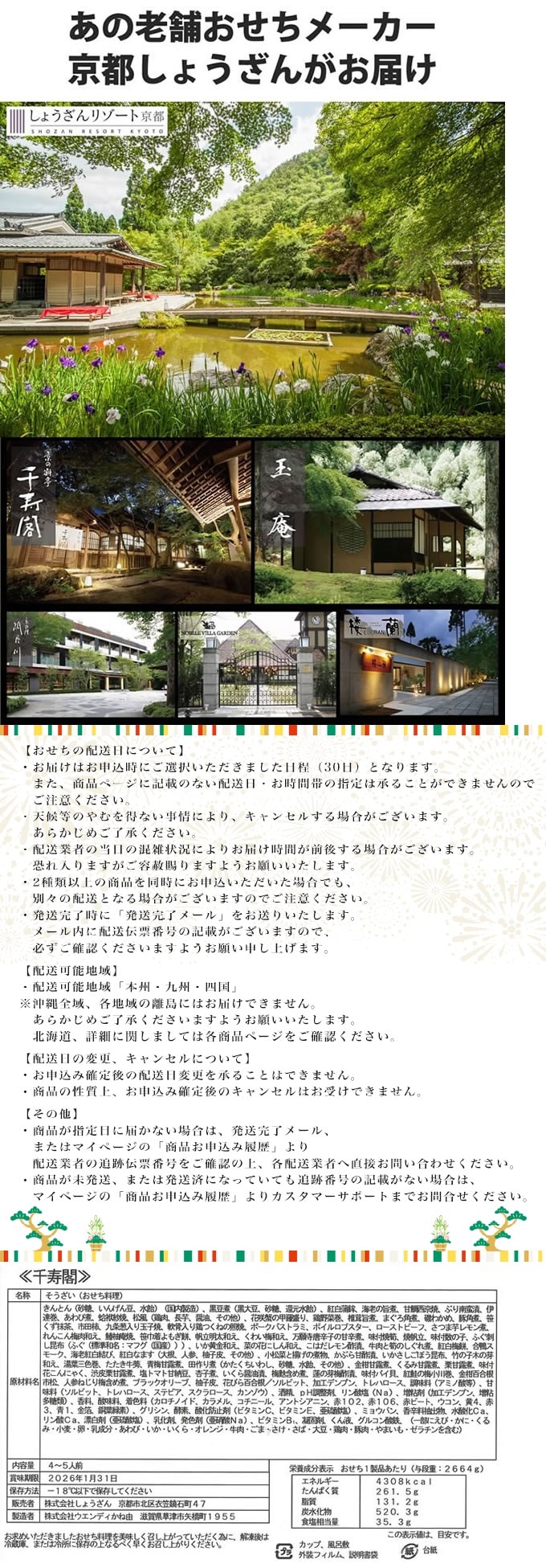 【12/30午前着】京都しょうざん おせち「千寿閣」(与段重/4-5人前相当/67種67品入) | 京都しょうざんリゾートのおせち