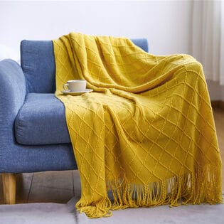 【イエロー/150×230】ニットブランケット | 毎日の暮らしにおしゃれ♪くつろぎ時間にお部屋を彩るマルチカバー♪