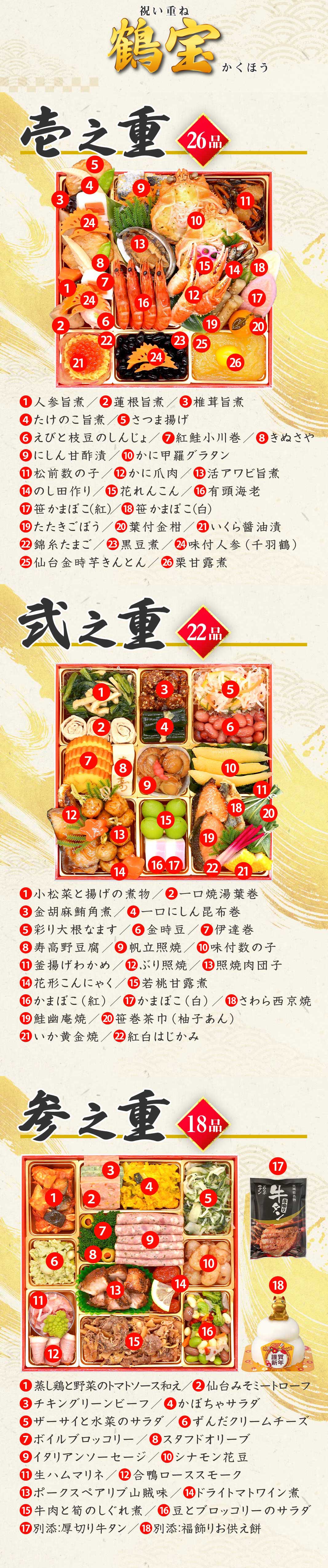 - 【12/30午前着】おせち「鶴宝」(8.5寸/66品/4~5人前/祝い重ね/三段重)