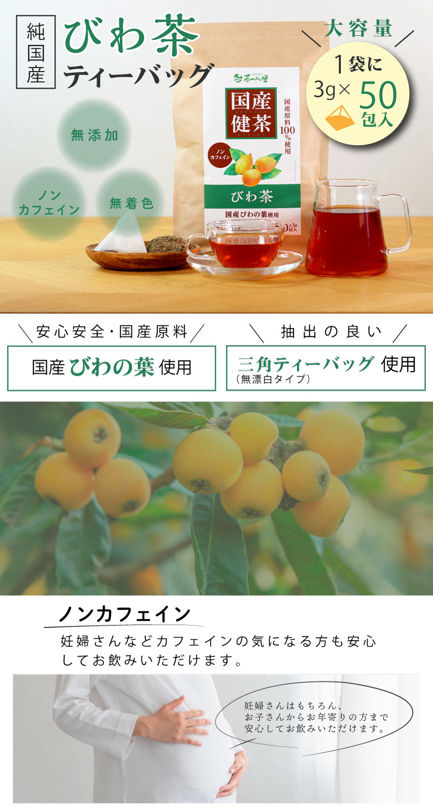 【3g×50包入×3パック】 茶つみの里 健康茶 ≪国産≫ びわ茶 ティーバッグ | 100%国産原料 すべて国内製造で安心