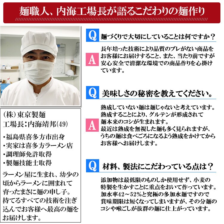 麺: 小麦粉・食塩/加工でん粉(打ち粉)・酒精・かんすい・還元水飴