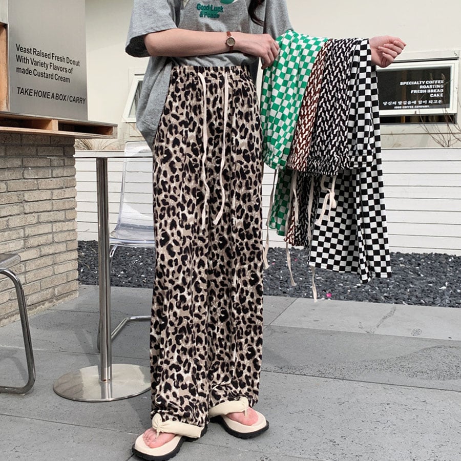 - 【ヒョウ柄】ウエストゴム 柄ワイドパンツ