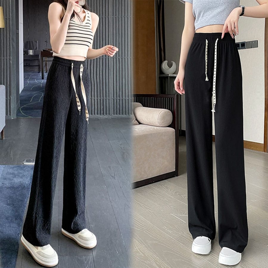 【グリーン】ウエストゴムリラックスワイドパンツ | サラサラとして柔らかいストレートワイドパンツ
