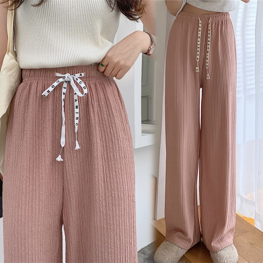 【ロイヤルブルー】ウエストゴムリラックスワイドパンツ | サラサラとして柔らかいストレートワイドパンツ