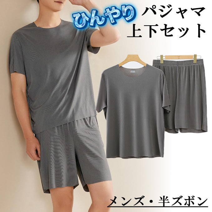 - 【グレー/Lサイズ相当】ひんやりパジャマ上下セット(メンズ・半ズボンタイプ)
