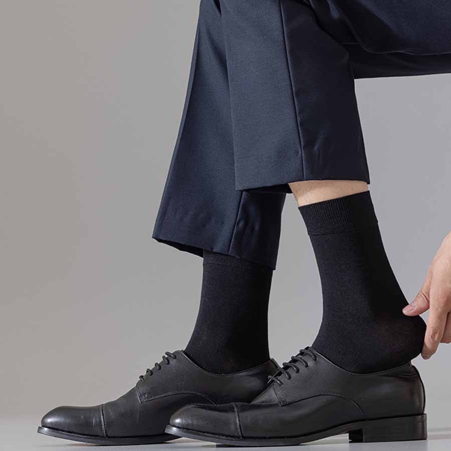 【ブラック】クルー丈シンプルソックス | 色合いが落ち着いていて、シンプルカラーだから、合わせやすい