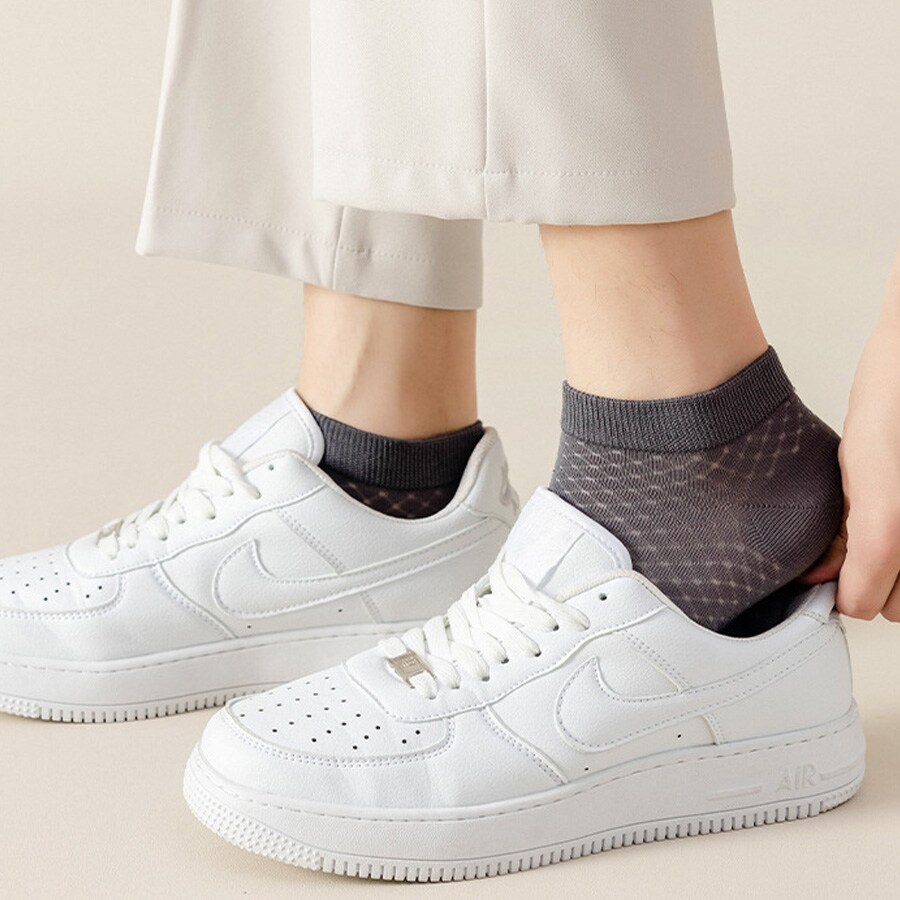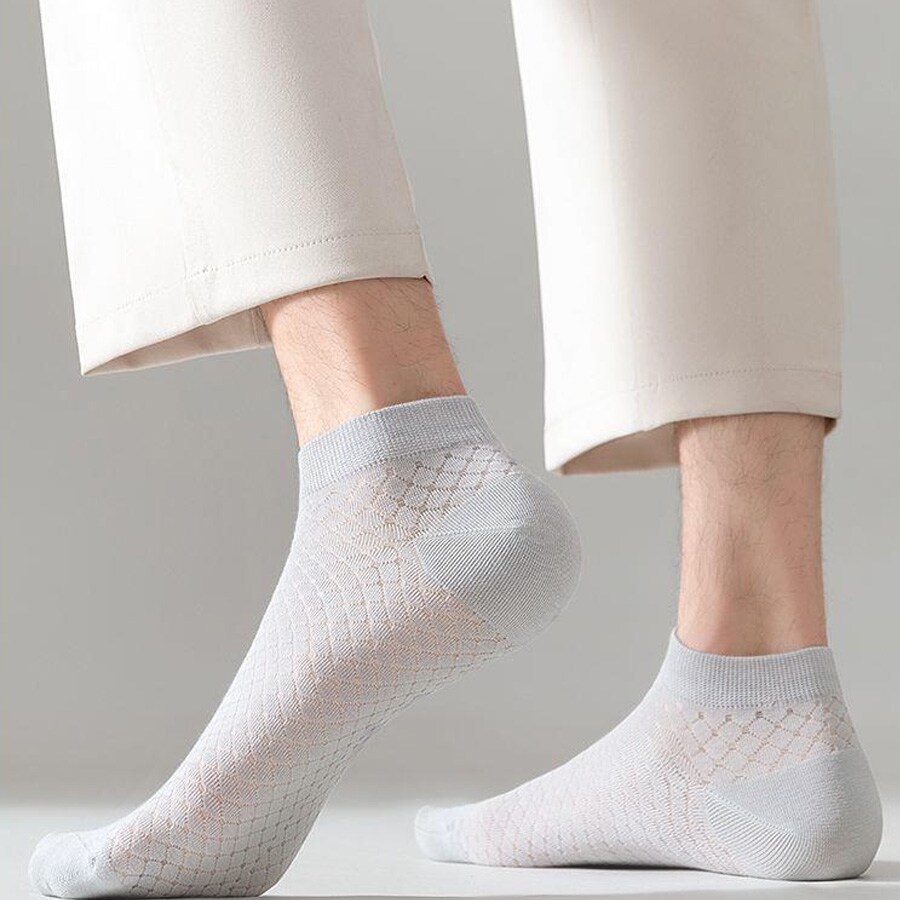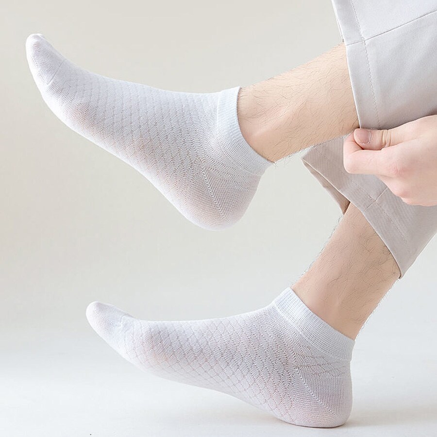 - 【ホワイト】メッシュ素材メンズソックス(スニーカー丈)