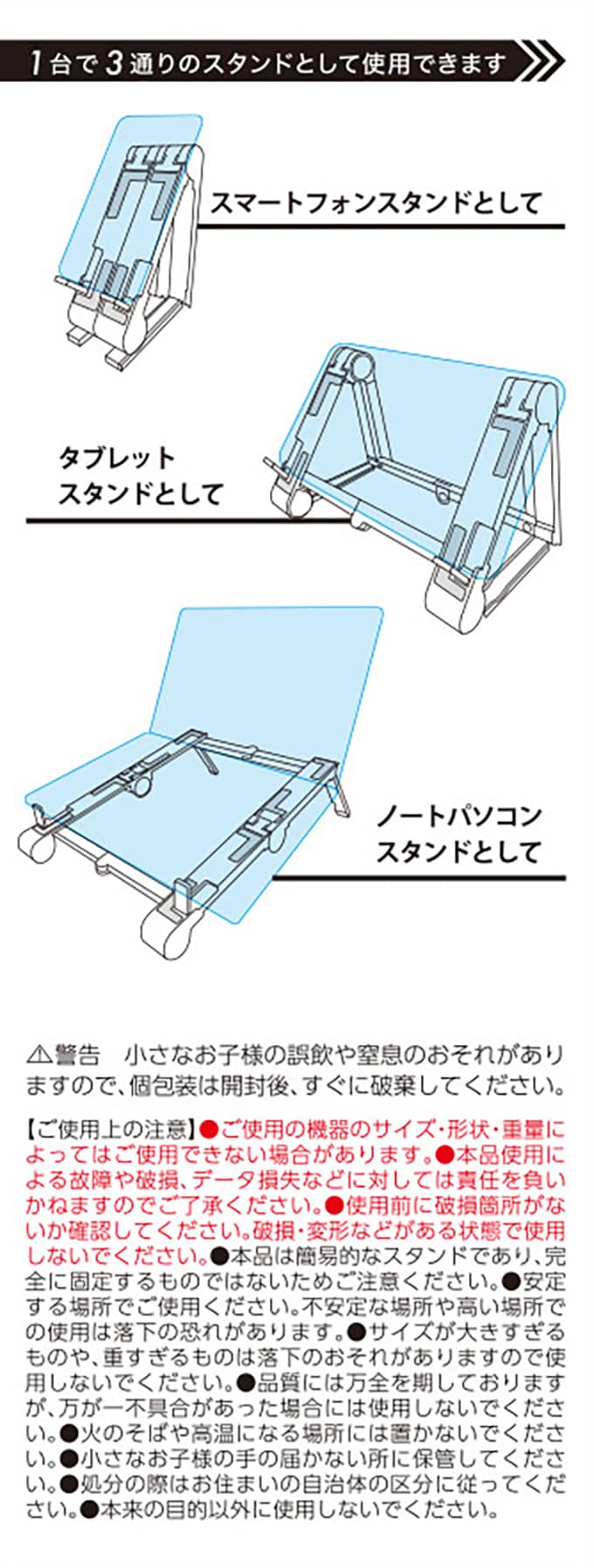 スマホ、タブレット、ノートPCなど、様々なデバイスに対応。形を変えるだけで、オンライン会議や動画視聴を快適にサポート。