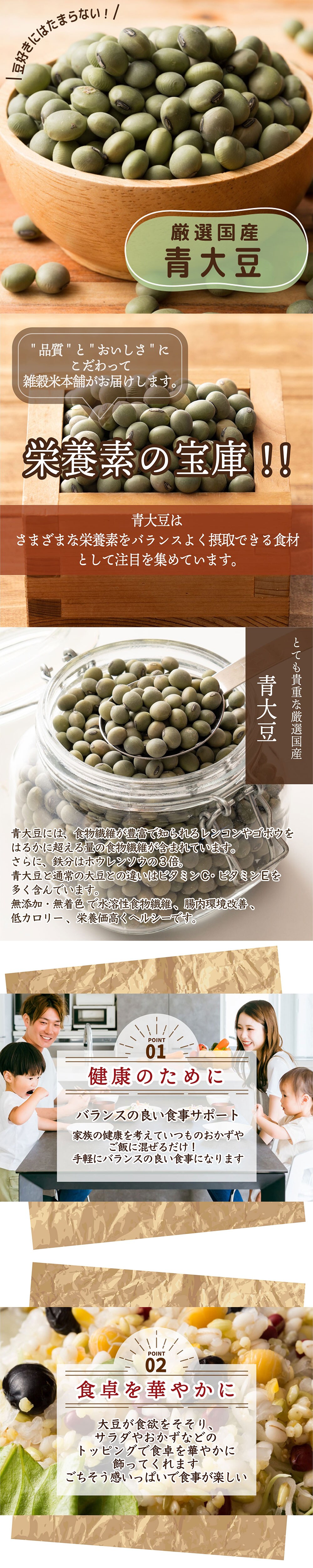 雑穀米といえば雑穀米本舗。日本国内産の原料を使用した雑穀米を多数取り揃え、店長加藤が特にお勧めしているのが【国産 青大豆】です。