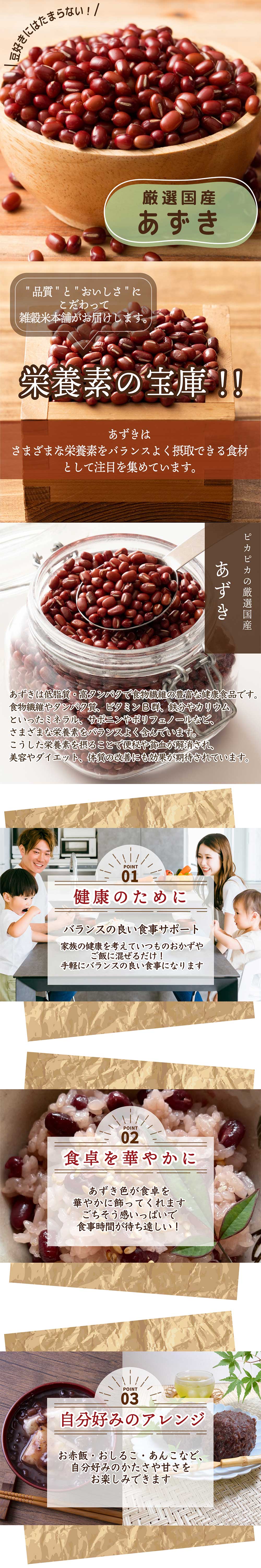 小豆は雑穀の中でも、玄米と同じようにビタミンB1を含み、ビタミンB1は糖質をエネルギーに変える効果を期待されています。