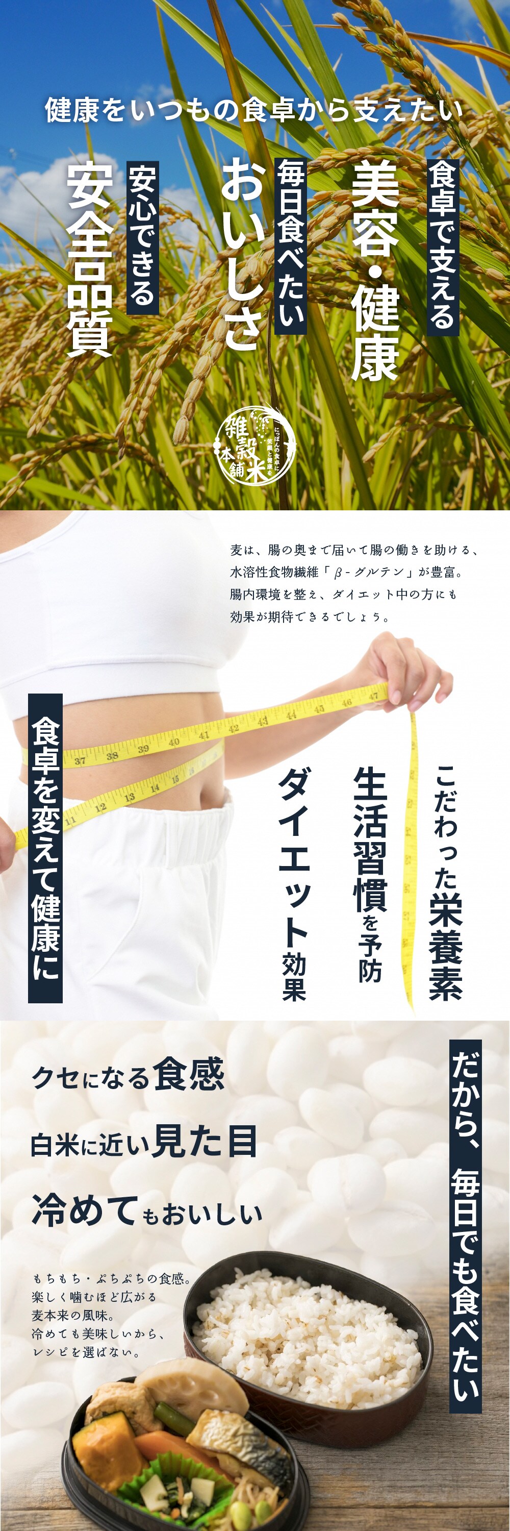 ・原材料/材質/素材:丸麦、胚芽押麦、もち麦、はだか麦、ハトムギ