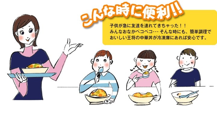 みんなおなかペコペコ・・・そんな時にも、簡単調理で美味しい大阪王将の中華丼が冷凍庫にあれば安心です。