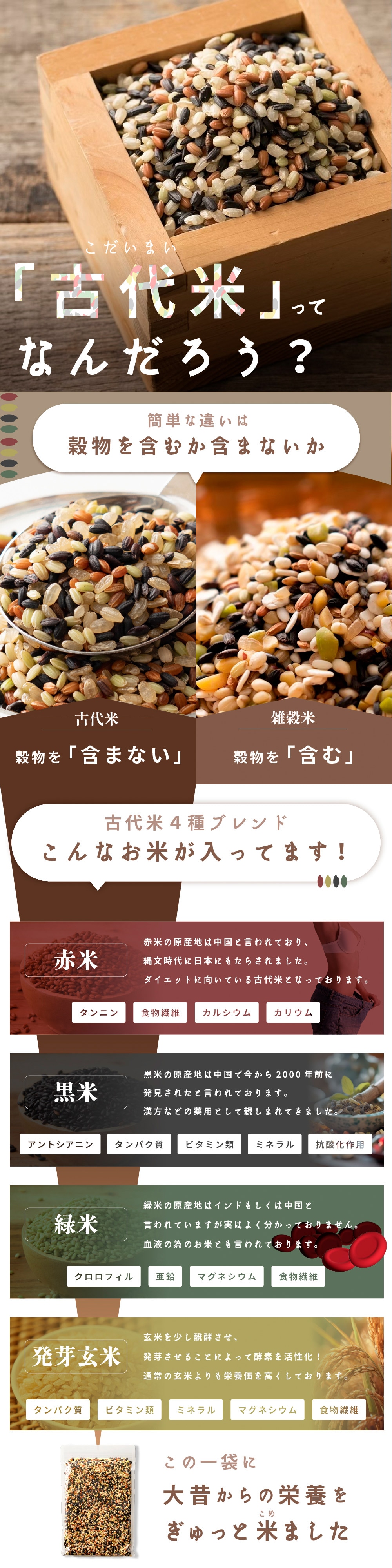 ・原材料/材質/素材:赤米、黒米、緑米、発芽玄米