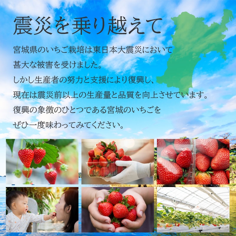「もういっこ」「とちおとめ」「赤い妖精」など、宮城を代表するいちご品種を贅沢に使用。