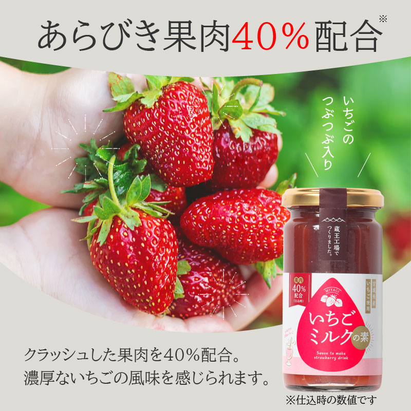 東北屈指のいちご産地・宮城県から届いた、果肉感たっぷりの「いちごミルクの素」。