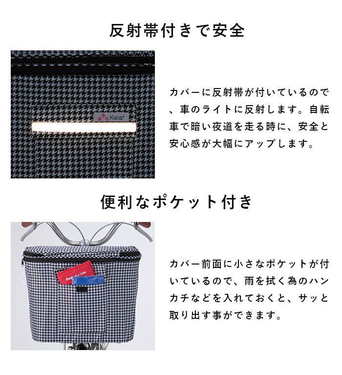 2段式 前カゴカバー 千鳥柄 | ★年配の方や若い方にも人気のチドリ柄の2段式前カゴカバー!