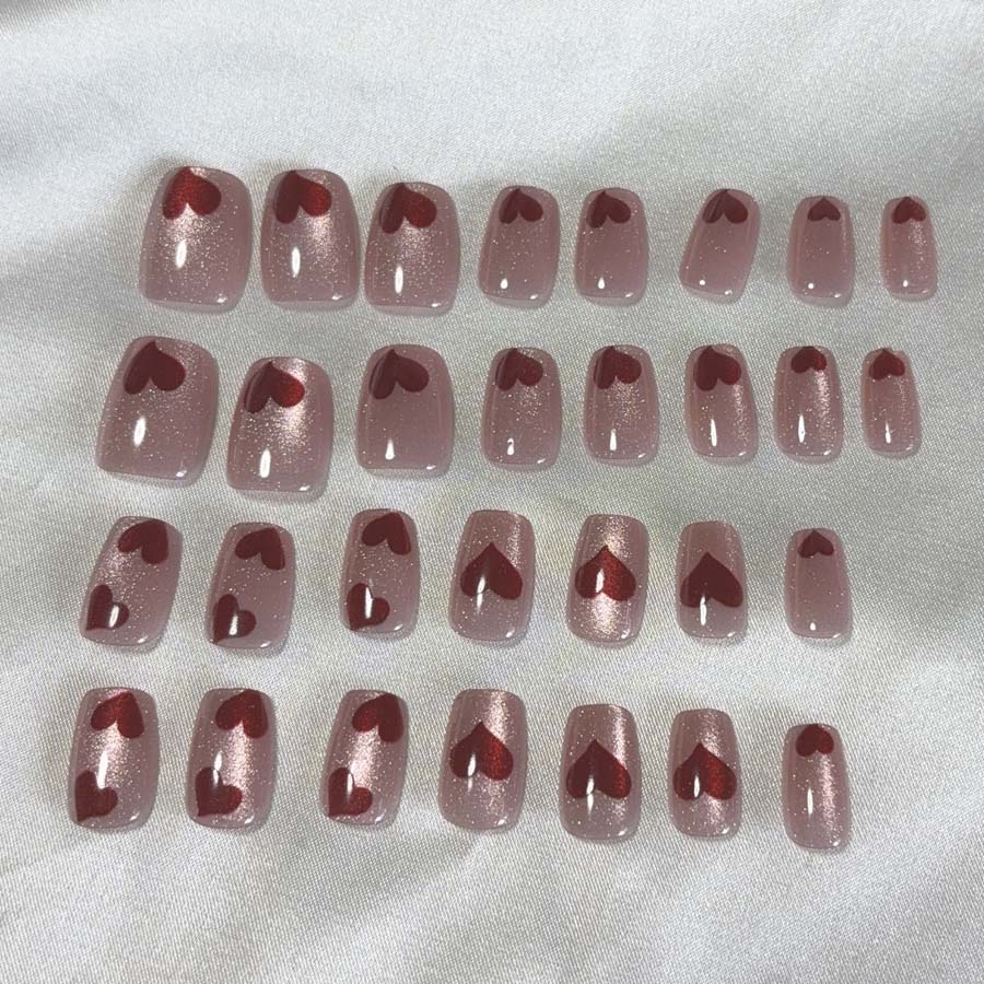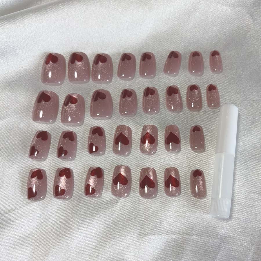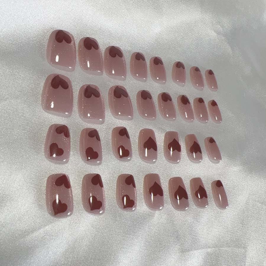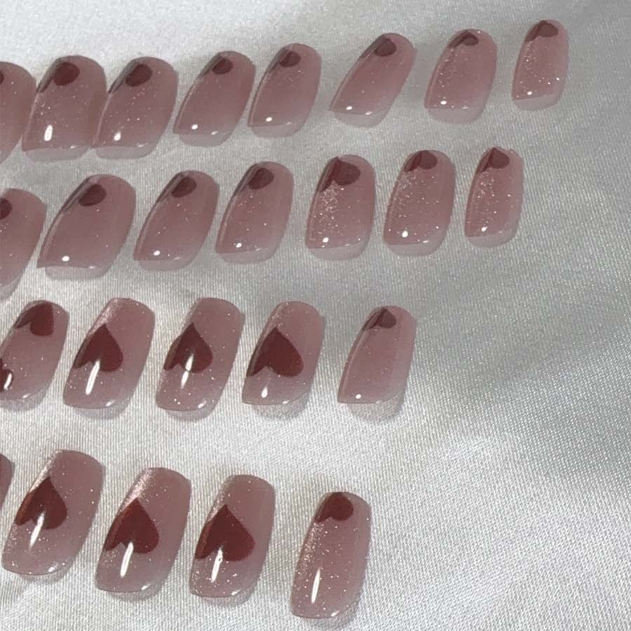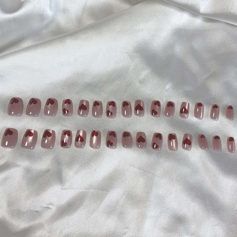 【24枚入】ネイルチップ ピンクマグ×ハートデザイン | シンプルでかわいいハートのネイルチップ