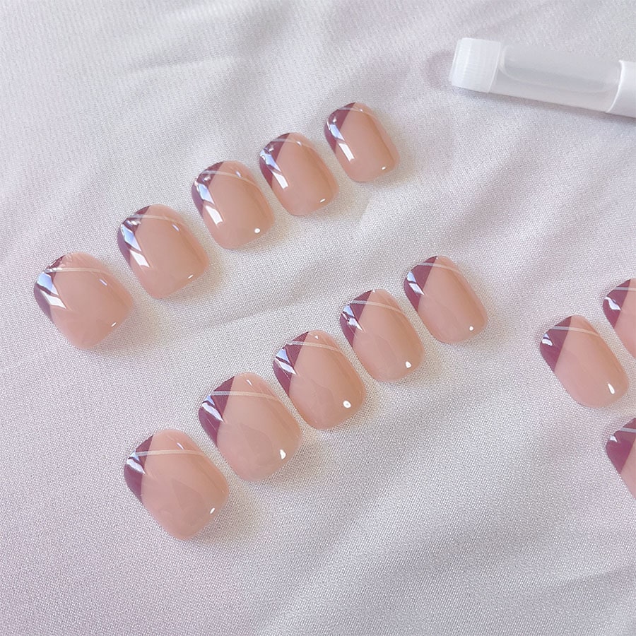 【24枚入】ネイルチップ ななめフレンチ(タイプ:R587) | 大人っぽいデザインのななめフレンチネイル